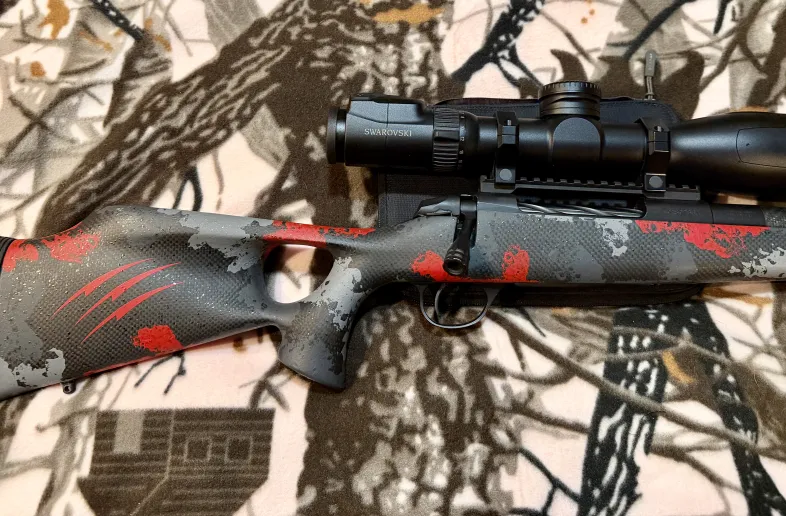 In new condition very few rounds fired pictured with a swaro Ds that is listed separately, ungraded stock and nix brake , and rail