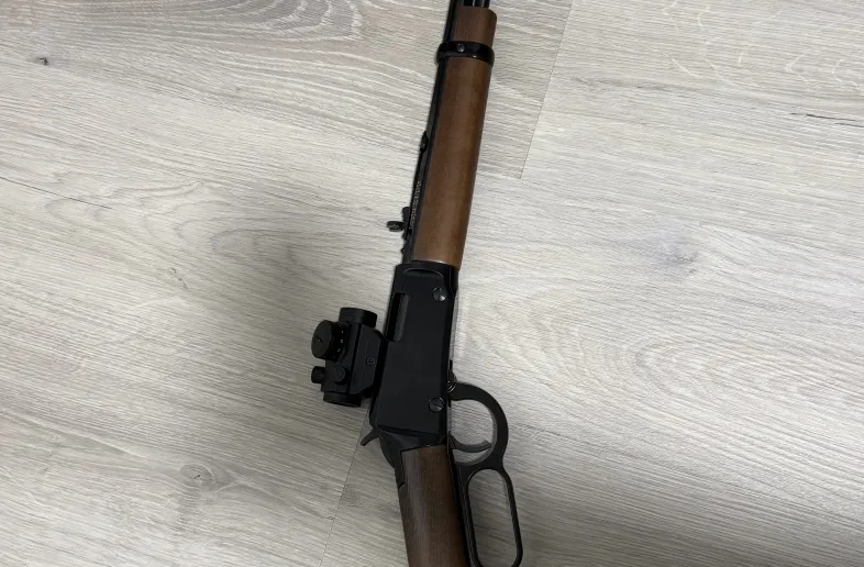 Henry h001t frontier model lever action with 20in octagonal barrel with original buckhorn sights and an accurate amazon red dot in perfect condition.very very smooth action