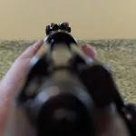 - Blade front sight and Tangent V notch rear