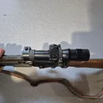 At the time I acquired this rifle the original scopes were either unavailable or very expensive. I found the vomz played the part. The front is attached with an original ring and a bushing. The back I had to make a scope ring to clamp the back in place. It's machined aluminum painted black. There is just enough room to slide the scope on and off its rail without having to remove the scope from the mount.