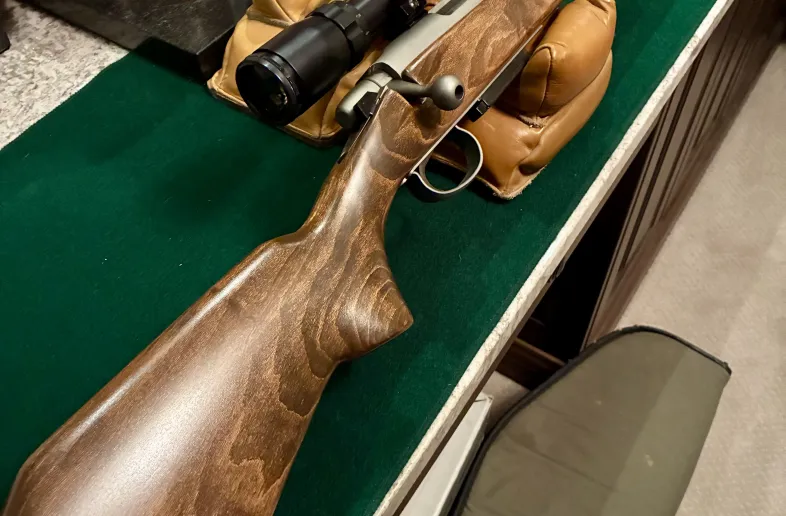 Refinished, cerekoted model 788 in a 222 Rem. Shoots 0.5” at 100 yards with 50gr ballistic tips. Neat piece in immaculate condition.