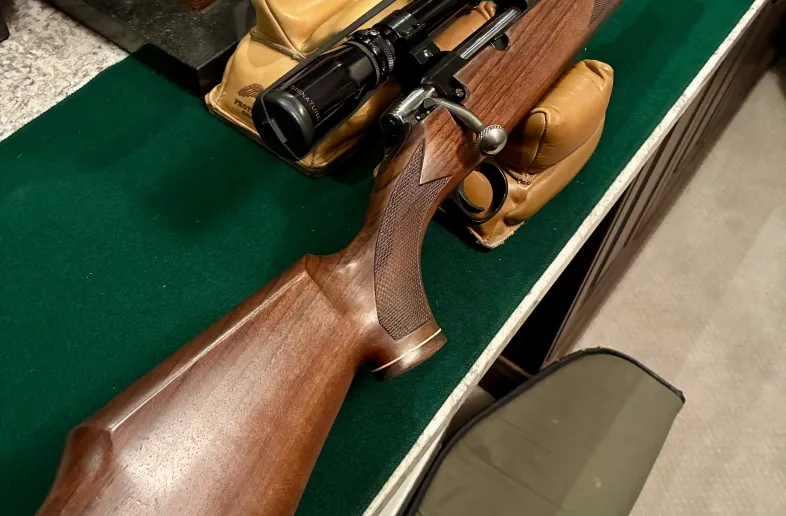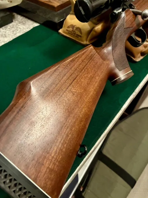 Beautiful rifle, great wood. Accurate. Comes with Burris signature 3-9x40 posi loc. Missing the tiny posi loc cap, doesn’t affect function.