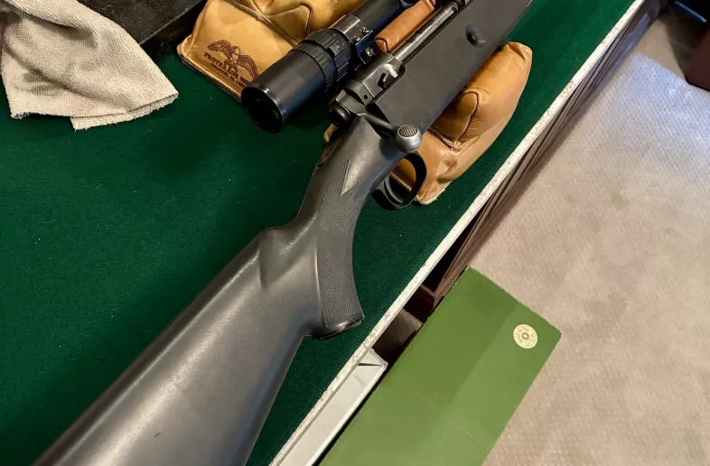 Good condition. Detach mag. Nice scope. Shoots well with factory W-W 150gr PowerPoints. Sighted in and ready to go.