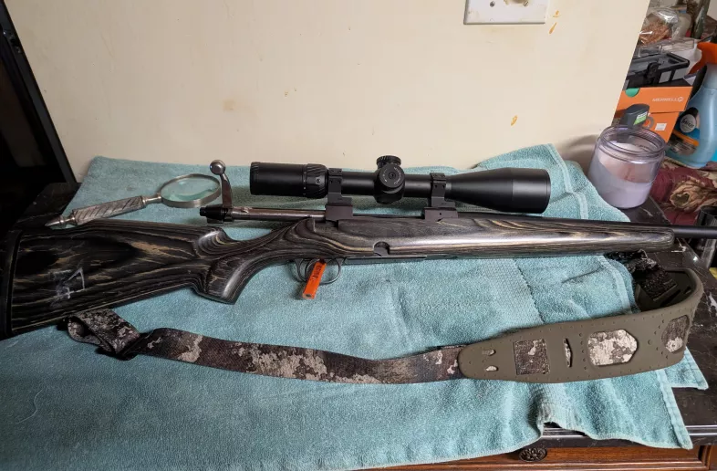 tikka 270 with laminate stock, scope etc, local please , ready to roll,