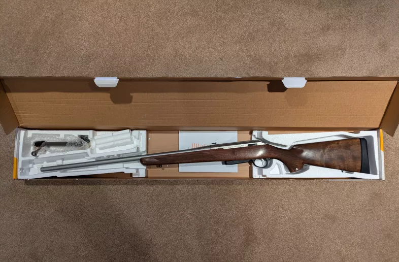 ASNIB - TIKKA , stainless 24.3" barrel, 300WIN MAG, oiled brown wood stock, single set trigger, approx. weight 6.6lbs. Will hold for non-refundable deposit. Pal verification required.