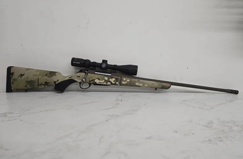 Excellent condition Tikka T3x SuperLite .223 in multicam stock. Also features a fluted cerakoted barrel and threaded muzzle with brake. Comes with a Vortex Diamondback HP 4-16x42 mounted in Talley rings.