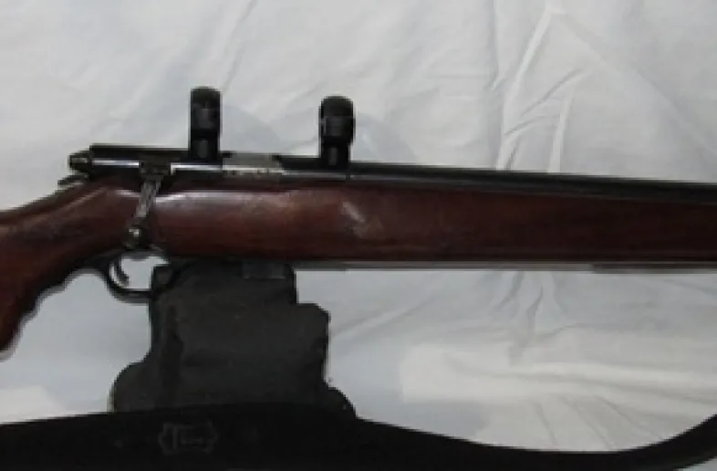 Used Mossberg Model 144, 22cal. Bolt Action, 25" Heavy Barrel, Walnut Sock, 1' rings, Black Leather Sling, Good Bore, 7rd magazine, Stock shows wear and has some dings in it from use. Good overall condition