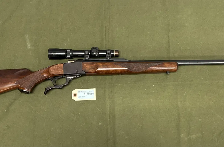 Used Ruger No 1 rolling block rifle chambered in 30-06 Springfield with a 26” barrel.