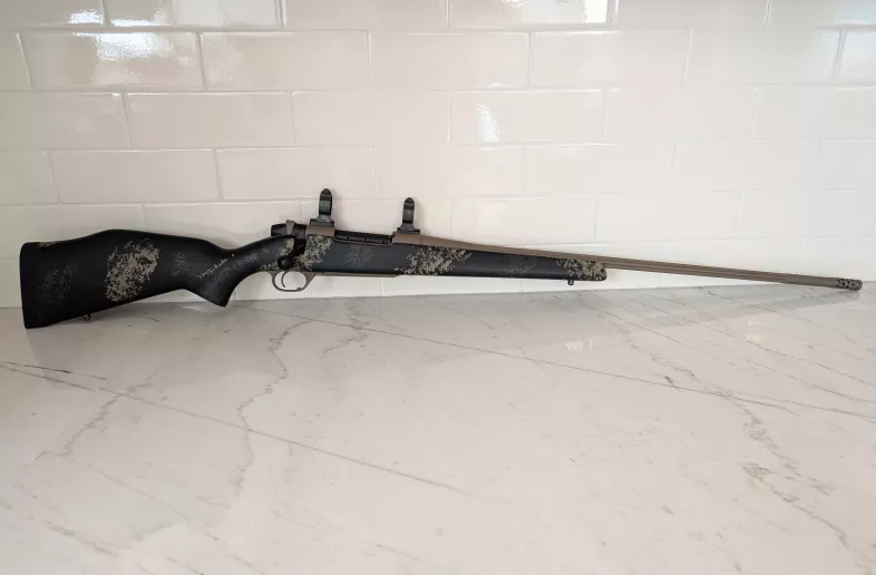 Same sponge camo stock as the Carbonmark, fluted barrel, Accubrake, unique cerakote finish.