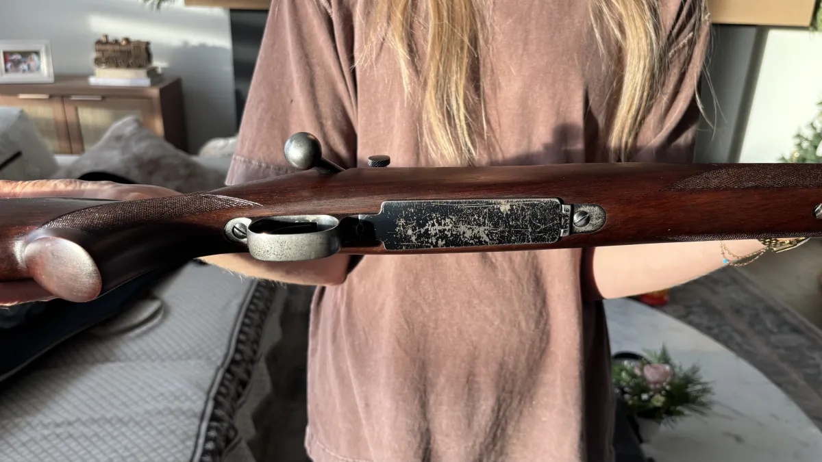 We have here a very early pre-64 Winchester Model 70 chambered in 30-06. It has a 3 digit serial number (19*) that dates it back to 1936.