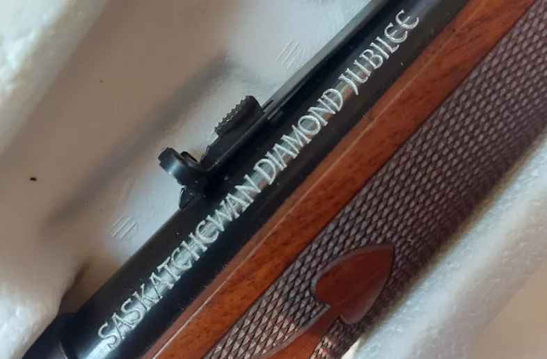 Winchester Model 94 Saskatchewan Diamond Jubilee edition. Mint condition, unfired in the original box. Chambered in 38-55.