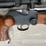 For sale I have this very good condition BSA Martini International 22LR. This is falling/tilting block single shot match rifle. Wood is very good with few scuffs and impression marks. Barrel I believe is after-market, light pattern without markings. Metal is very good with thinning bluing on the barrel. It does not come with iron sights but comes with professionally installed 11mm dovetail rail on top of barrel and the receiver, ready with a scope. The scope is a used Scorpion 4-12x 40mm scope. The scope has few marks here and there but glass is clear. Rifle works great, makes good dents in the primers and flings spent cases far across the room.