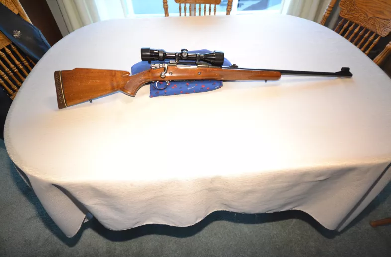 Very accurate rifle in good condiion with Bushnell Trophy Scope (with box). Blueing is excellent, stock has handling marks as shown in photos. This has been my rifle for mule deer, bears, elk and moose. Selling for estate reasons.