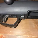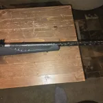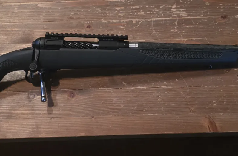 Savage 110 ultralite in 308. Shoots very well. Has a random thread protector on it as i wasn't a fan of the muzzle brake. Crack in the trigger gaurd.