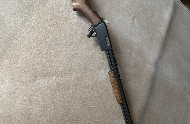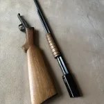 Marlin model 38 take down pump action chambered in 22S-L-LR. Featuring a full octagon barrel, Marlins exclusive outer magazine tube design to reduce bullet stacking and a very slick take down button that allows instant take down of the rifle. The safety is also ambidextrous featuring a push up and down action that works equally well for either hand.