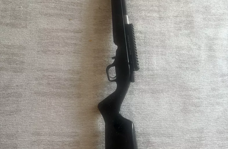 Christensen arms ranger .22LR in black with grey webbing, 100 rounds through it, very light weight and accurate.
