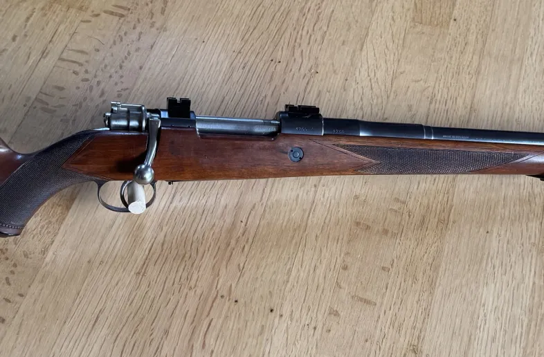 Rare C-ring FN Commercial Mauser 98. Only the first couple years of FN Commercial Mausers were manufactured with the C-ring breech before changing to the cheaper, easier to machine H-ring breech. Incredibly smooth action. 270 Weatherby Magnum. Excellent bore and metal finish, excellent wood. A flat-shooting hotrod as is, or an excellent base for a custom 338 or 458.
