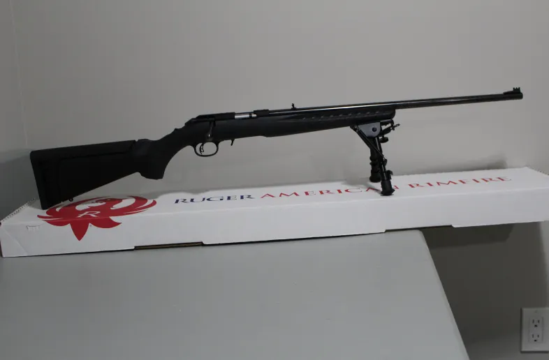 Ruger American Rimfire in .22WMR. with a 22" barrel and open sights and 2 #12 Weaver bases. Excellent condition. 9 round capacity. No trades . PAL will be verified. Can ship on buyer's dollar.