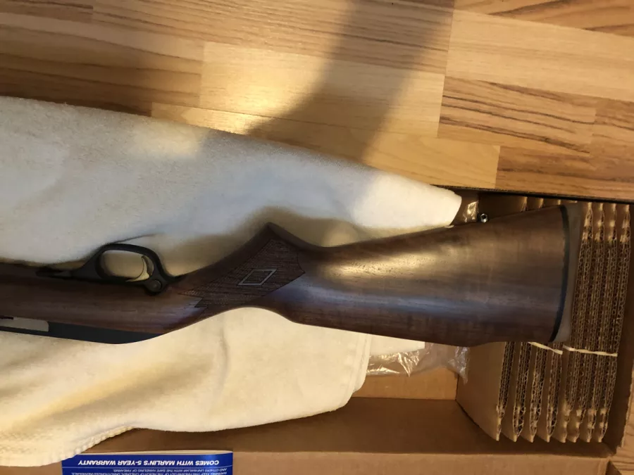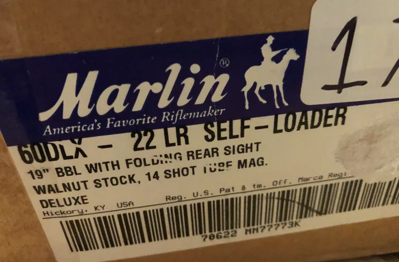 This Marlin model 60 is brand new old stock, gold trigger, walnut Monte Carlo stock, steel cocking handle , Marlin rubber butt pad, box , lock , owners manual all included , Marlin hang tag had never been removed ,front hooded sight, rear folding and adjustable , new in box , no trades , or shipping , this is a rare rifle , and it is the only one around new in box !! Thanks for looking !!
