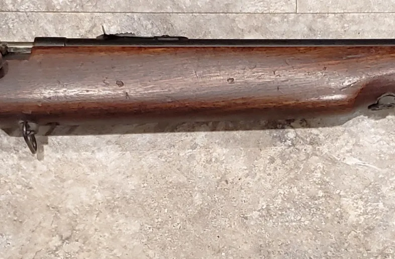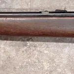 This is a Canadian military-marked Cooey model 82 training rifle in .22LR caliber. The 'C with Broad Arrow' is stamped onto the receiver as well as the stock. The rifle overall is in decent condition, but not perfect. Wear is apparent at the toe of the butt (from getting out of position to reload during target shooting) and there is a chip in the wood from the bolt clearance groove behind the receiver. This is difficult to notice when the bolt is in place. It would appear that the rear sling loop has been removed and reinstalled in front of the trigger guard to allow for a target style sling loop. The bore appears to be very good. The price reflects overall condition, so price is firm. Shipping in Canada $60. No trades please. PAL verification a must.