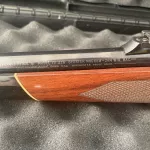 This is a 1985 production rifle and is sporting a 26” barrel with factory iron sights, and sits in a very nice high gloss finish walnut Monte Carlo stock, it’s topped with a brand new 3-9X40 Tasco Pronghorn Scope.