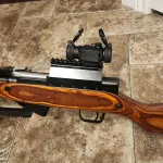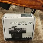 The Vortex Sparc II Red dot works great on this riffle, easily putting under 2" groups at 50 yds and 4" groups at 100 yds