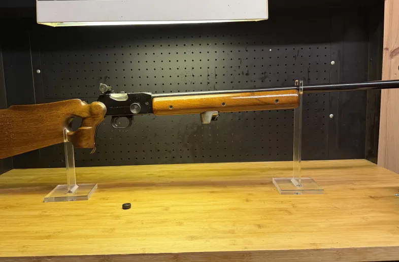 Rear sight has the elevator screw head detached from the screw. Could probably be resoldered on.