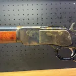 24 1/4 inch barrel with mirror bore. Folding peep sight . Light handling marks on stock