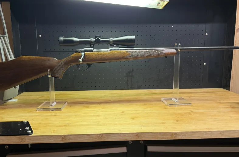 22 inch unsighted barrel , fitted with a 6x42 scope and rings