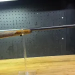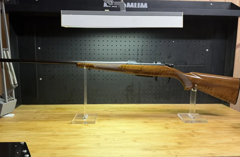 Sights were removed and barrel is threaded. Wood shows light handling marks. Mirror bore.