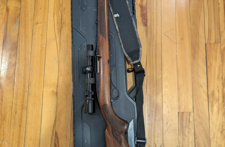 Can add the scope and Weaver mount for extra. Bushnell Trophy 1,75-5 perfect for deer hunting.