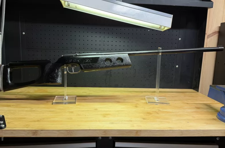 Very good metal, all made in France and a few dings on the stock . Has standard rimfirew rail for scope and adjustabkle match trigger.