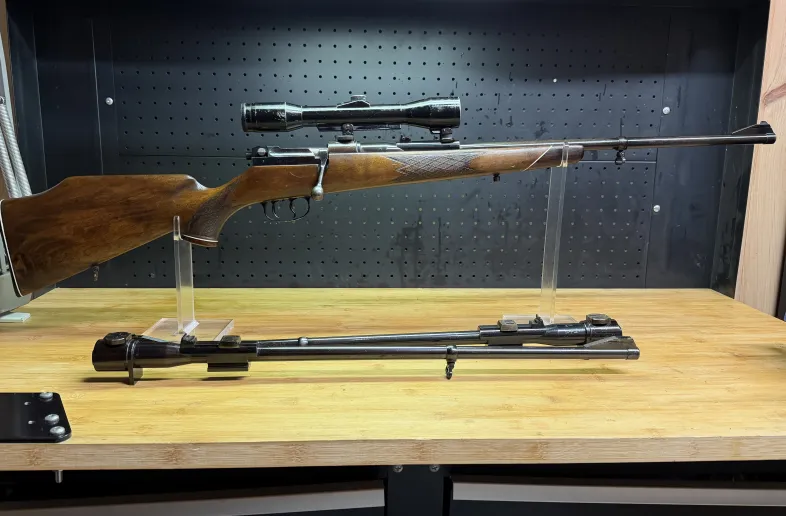 Nice Mauser 66 with 3 barrels that work with the same bolt face. Good wood . Set trigger .