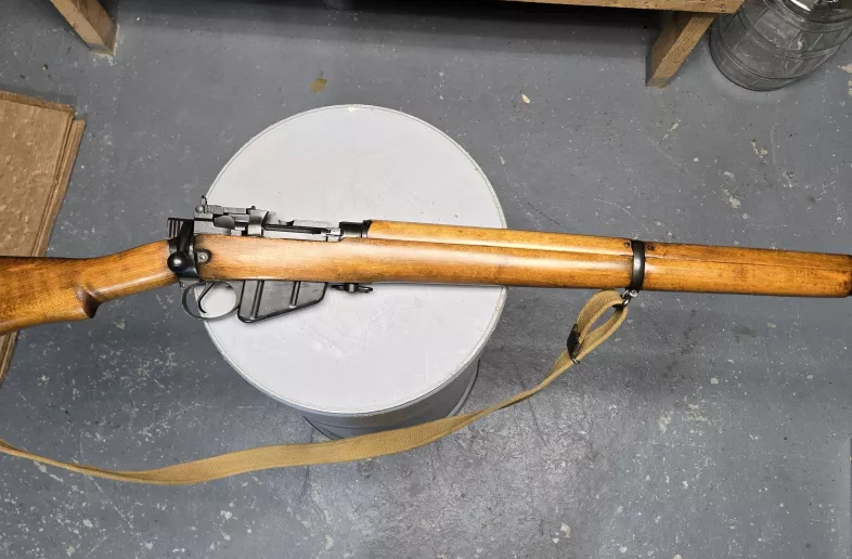 Comes with fine adjust fazakerly sight and target shooting action swivel and correct like new 1943 sling.