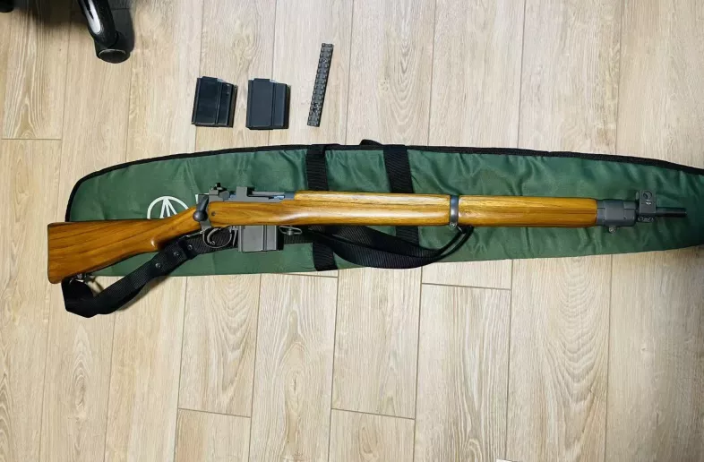 The AIA No.4 Mk.IV is an updated Lee–Enfield–style rifle built to use modern 7.62×51mm NATO (.308 Winchester) ammunition. It retains the fast-cycling Lee–Enfield action while incorporating structural and material improvements for higher pressures, durability, and serviceability. This rifle is extremely rare and in near mint condition. It has been fired very little and shows only minimal handling marks with no major exterior blemishes.