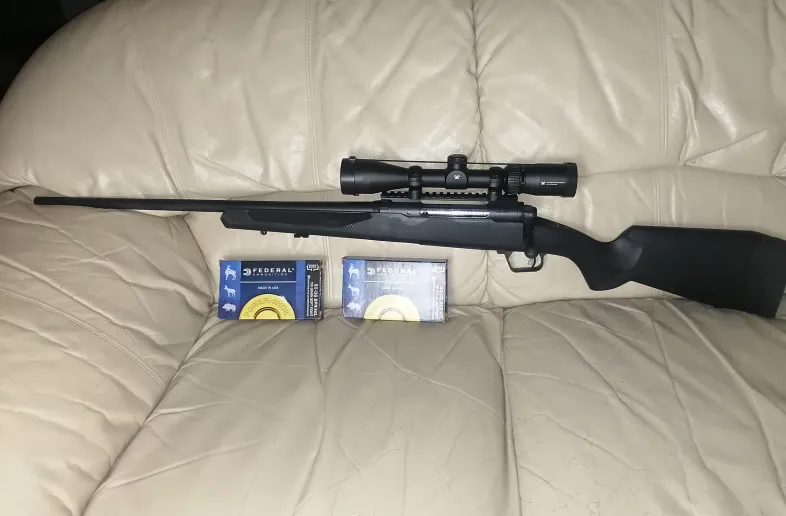 For sale is my almost new left hand Savage model 110 in 30-06 caliber, vortex scope 3x9x40, one 4 rounds magazine and 2 boxes of 30-06 ammo.