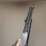 upgraded with Midwest handguard and stock. comes with muzzle device,hand stop and rail cover and shell holder.