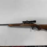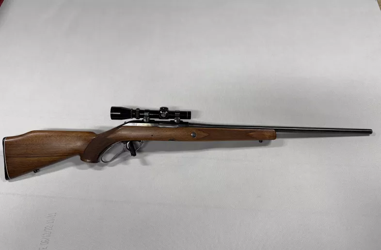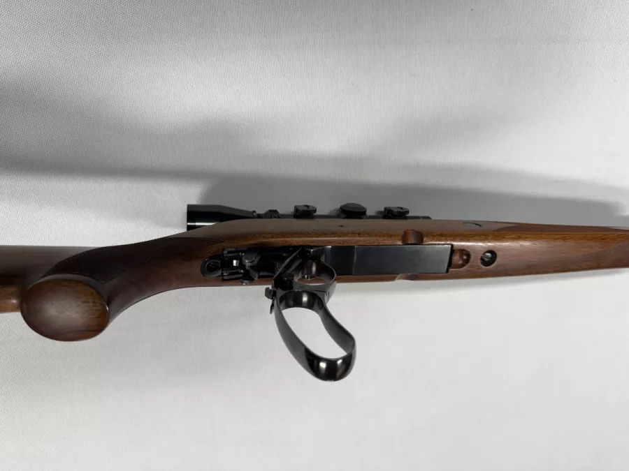 The mag holds three and one in the chamber. It's been hunted with and has some minor wear and tear, scratches, but otherwise in great shape. Bore is clean, action is very clean and smooth. It has an older leupold scope 1-4x mag, great for bush hunting. Gun serial number is in the 7XXX, but I've blacked it out for photos.