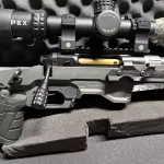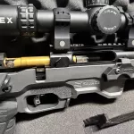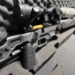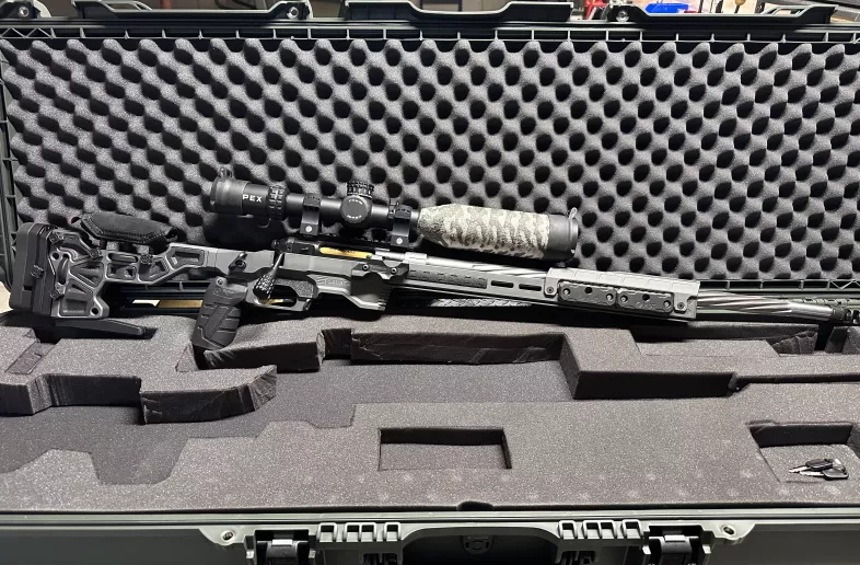 Features a custom MDT savage ACC premier chassis in sniper grey.