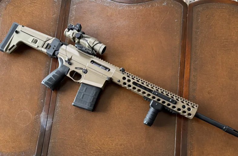 This is as close as we get to a NR “Scar”. This was a brand new Troy 308 Par, had the custom work done to get this look.