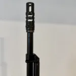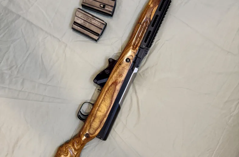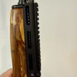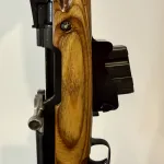 Modified SKS. Threaded barrel and installed muzzle break. Replaced gas tube with picatiny rail. Magazine adapter to accept 10 rounds LAR magazines. Comes with 2 of those. Modified bolt and frame to accept magazine adapter. Refinished stock in a lighter colour and carved it to fit right hand better.