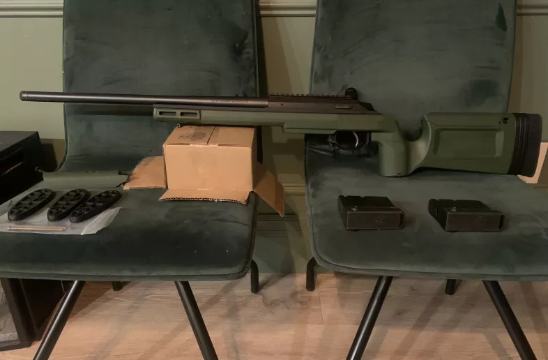 Brand new, never fired Tikka 6.5 Creedmoor Tactical 20” Barrel. Comes in Sako Green KRG Bravo Chassis with 2 CTR 10 round magazines, scope rail, spacers and a spare cheek rest. Barrel is threaded. Comes with original stock as well.