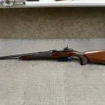 It has a set trigger and accurate! I don't have the original rear iron sight for it but the upgraded peep sight works well on this rifle. The wood is excellent and virtually no marks on it. The blueing on the metal is perfect, and the bore is in mint condition.