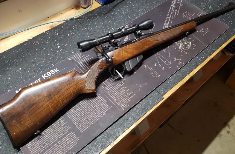 Serial numbers match on the bolt and receiver. She is in very nice shape with nice blueing and without rust. The stock does have a few handling marks but no serious gouges or cracks. Bore is very good no issues. The rifle does not look to be fired much since it was convered. The scope is a Weaver K4 and is in nice shape. The glass is clear but the turrets are definitely on the heavy side. The rings are Parker Hale. I fired a few rounds through it and it cycled and shot fine. The rifle will have to be checked for zero again as i had the scope off since shooting it. Overall very nice classic set up.