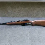 Beautiful, accurate and fun to shoot! The blueing is 100% and the wood stock is immaculate. This is as close to new in box condition as you will get. It has adjustable front and rear sights, a crisp set trigger and the bore is in mint condition. Comes with one five round magazine.