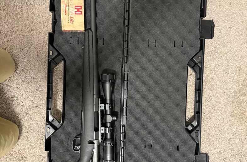 left hand Ruger American package with only 3 shots thru it. Comes with case, 1.5 boxes of ammo, and a brand new bushell banner 2 scope. Only selling because I dont have time to get out shooting or go hunting anymore.