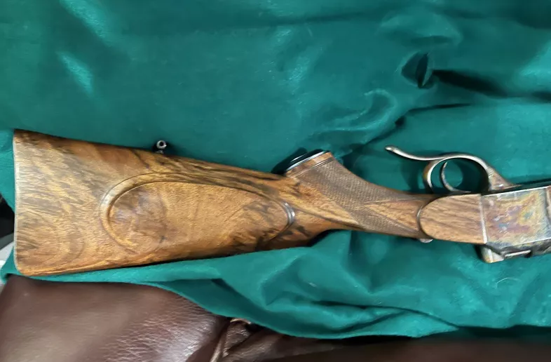 Custom built by Lew Bates on a Hagn action. Beautiful piece of wood. Single shot falling block can handle any calibre, this one is chambered in .270 Win.