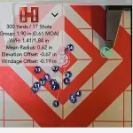 I was shooting 68gr berger flat bottom bullets with stellar accuracy. The rifle routinely shot about a 2" extreme spread 25 shot group at 300 yards during fireforming. I have also included the last group I shot with the 87gr V-Max with very similar accuracy as the 68gr Berger.