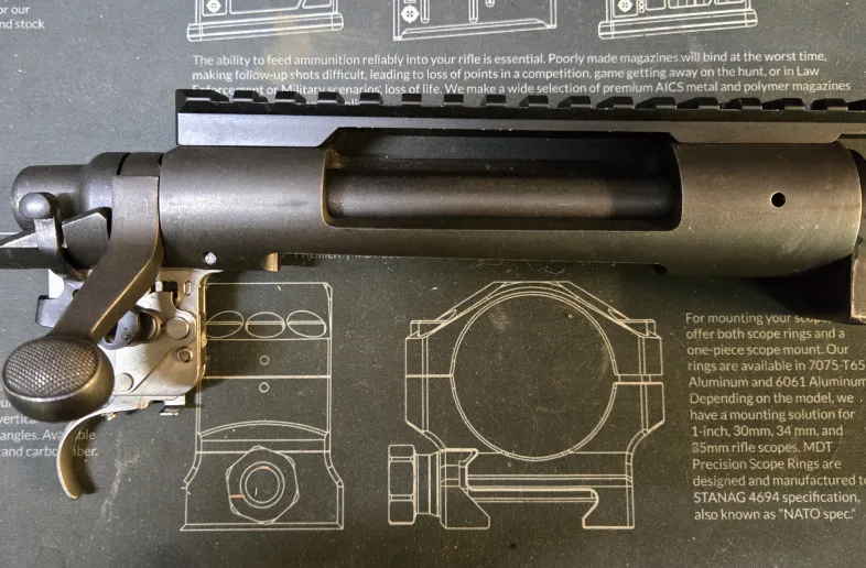 Remington 700 long action with standard bolt face. Comes with xmark pro trigger, recoil lug, and 20 moa aluminum rail.