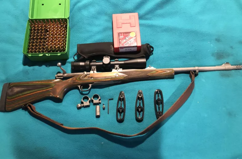 Ruger m77 guide gun in 300rcm with Nikon monarch scope ported brake and thread protector adjustable LOP with the stock inserts, Glass bedded with rifle basix trigger comes with approximately 60 rounds of 220g round nose hand loads, dies and extra brass. Gun is very accurate with the 220g hand loads. 2.5” at 300m asking 2700 OBO I would prefer local buyers as shipping ammunition is difficult
